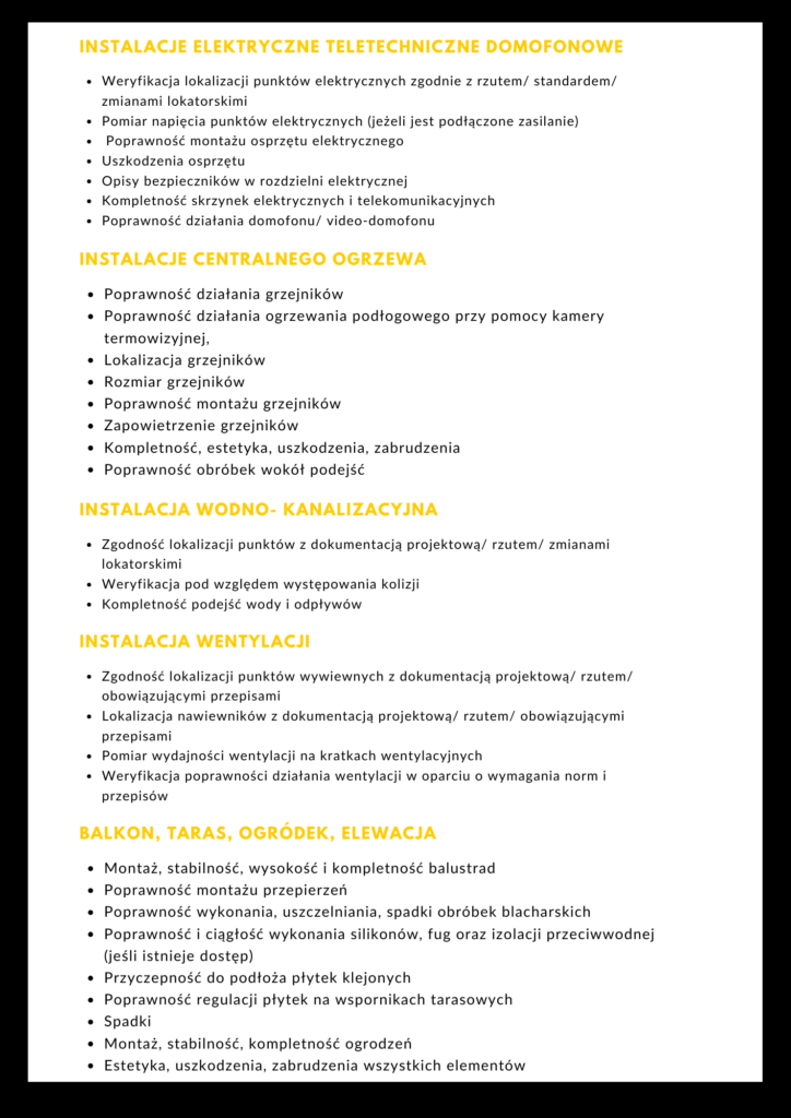 5. Podyktuję przedstawicielowi dewelopera wykryte wady i usterki do protokołu odbioru bądź sporządzę taki protokół.